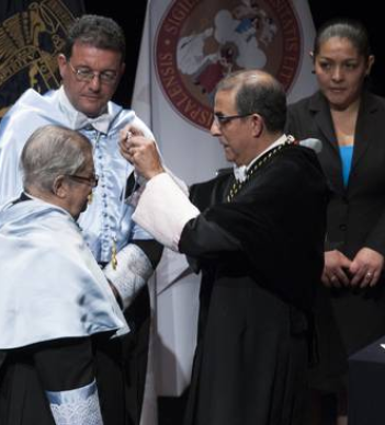 Serreras hizo la propuesta de investidura al departamento de América de la Facultad de Geografía e Historia de esa universidad ibérica. Aunque no pudo asistir a la ceremonia que se efectuó en el teatro Juan Ruiz de Alarcón del Centro Cultural Universitario, envió un video con la lectura de la laudatio (exposición de motivos para conferir ese honoris causa).