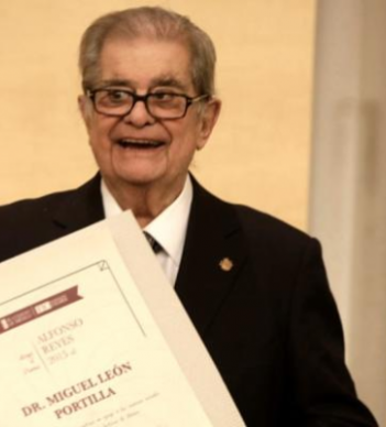Por su obra como filósofo, historiador, filólogo y traductor, por su labor internacionalmente reconocida en la preservación de las lenguas indígenas, muy especialmente del náhuatl, y a través de ellas, de la filosofía de las lenguas y culturas originarias, Miguel León Portilla recibió hoy el premio Alfonso Reyes 2015 que le otorgó el Colegio de México (Colmex).