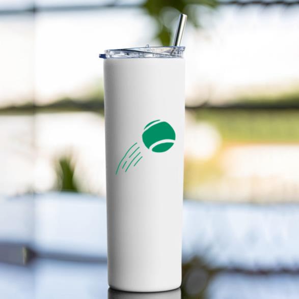 Product Title: Tennis Ball Cut Out Doodle With Motion Lines Skinny Tumbler 20oz Skinny Tumbler 20oz